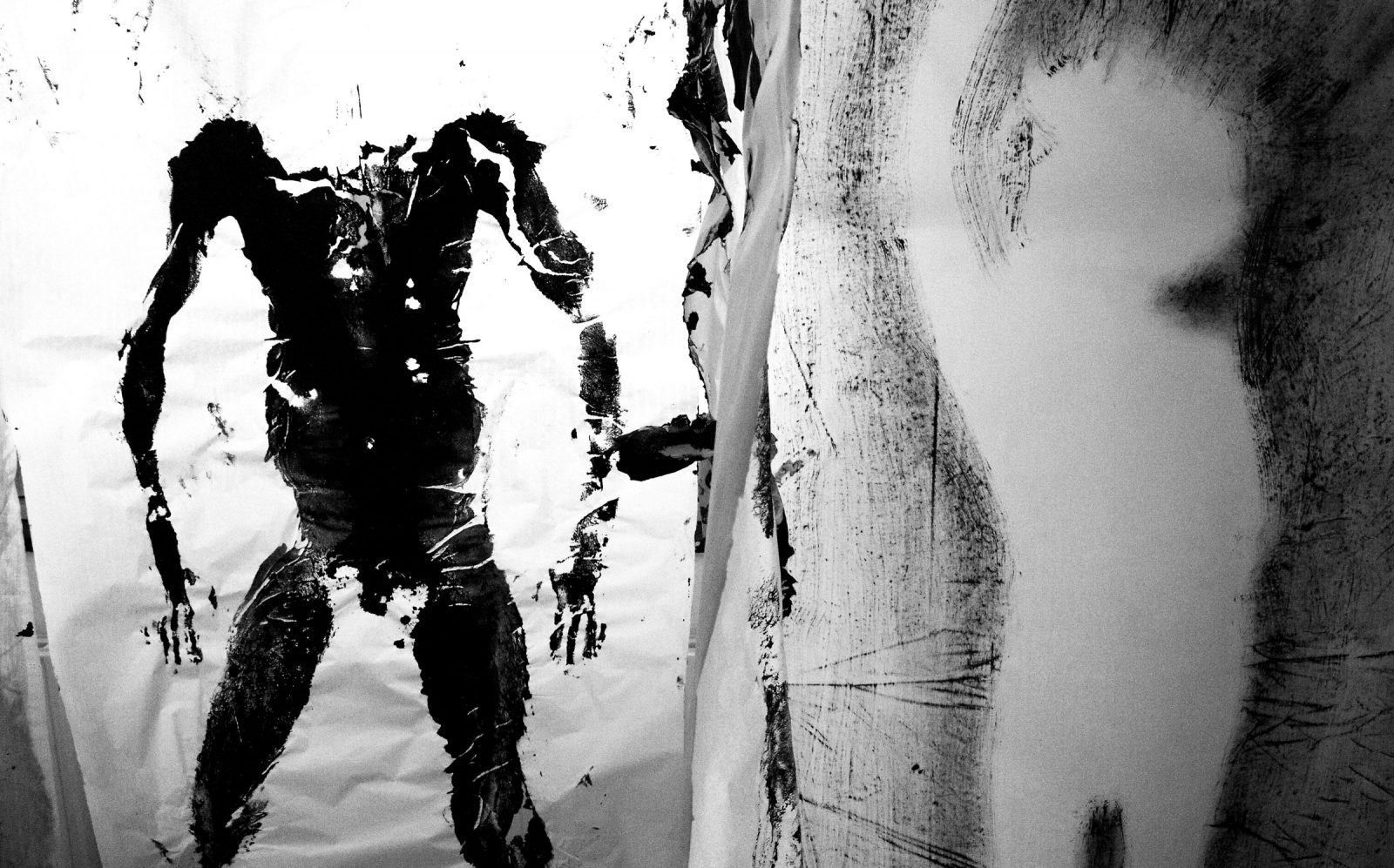Een schilder-sessie van twee weken, met als resultaat een installatie van levensgrote inktportretten. Locatie: de Amsterdamse kunstruimte PuntWG.