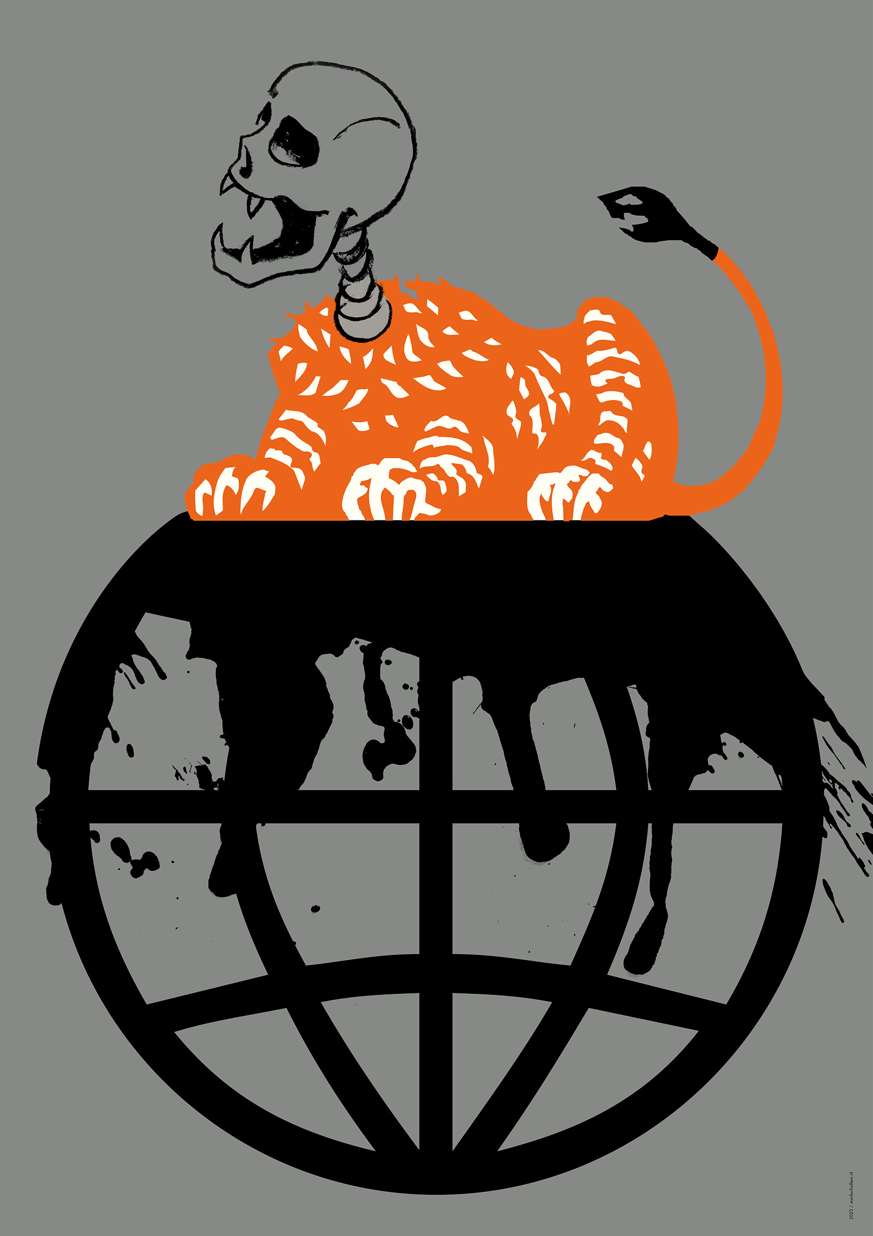 Affiche voor de A12 blokkades van XR in Den Haag. Wat zien we als we beter kijken naar die trotse Hollandse ING-leeuw?