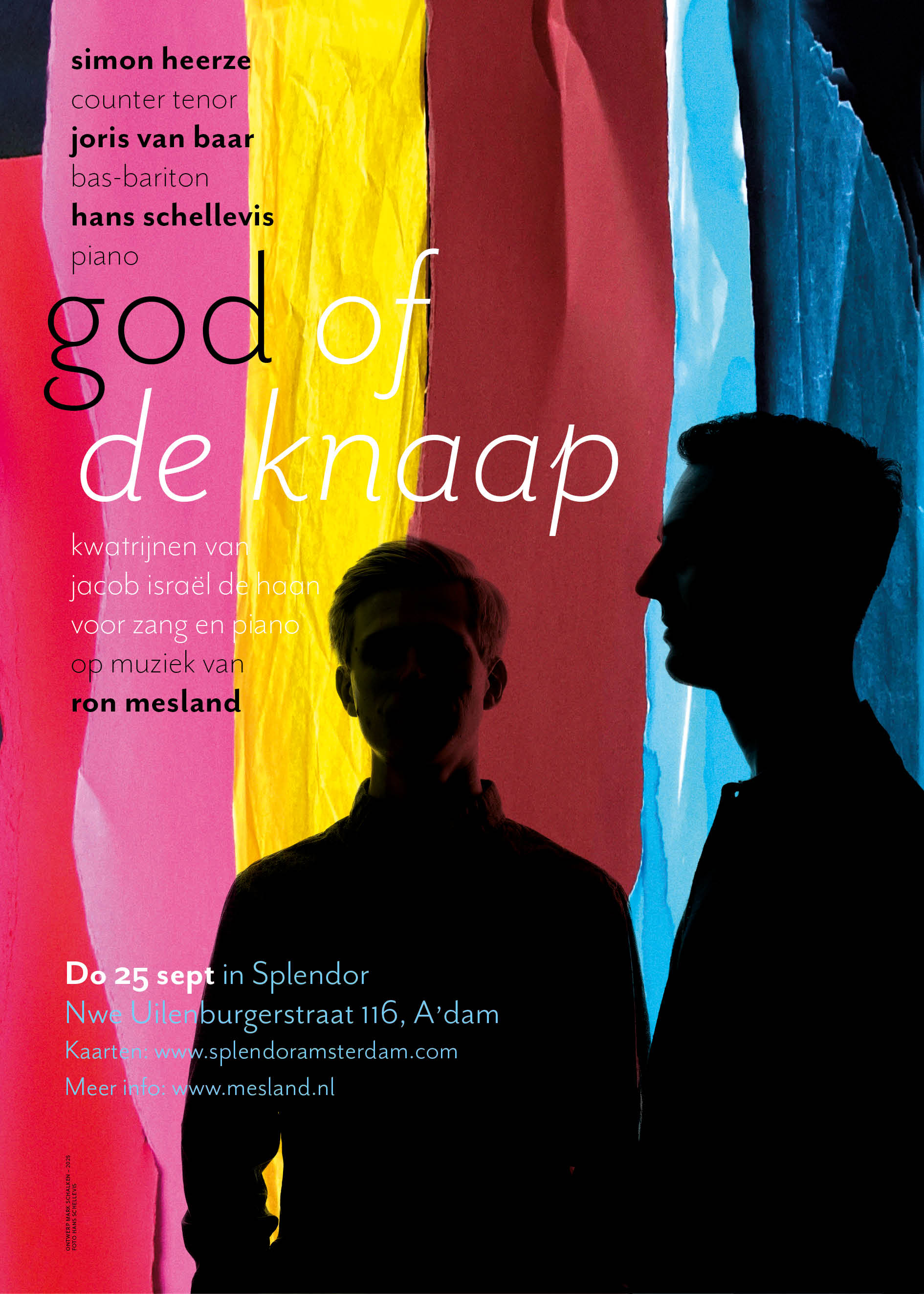 Affiche voor de première van de liederencyclus die mijn man Ron Mesland componeerde. Silhouetfoto van de twee zangers door Hans Schellevis.